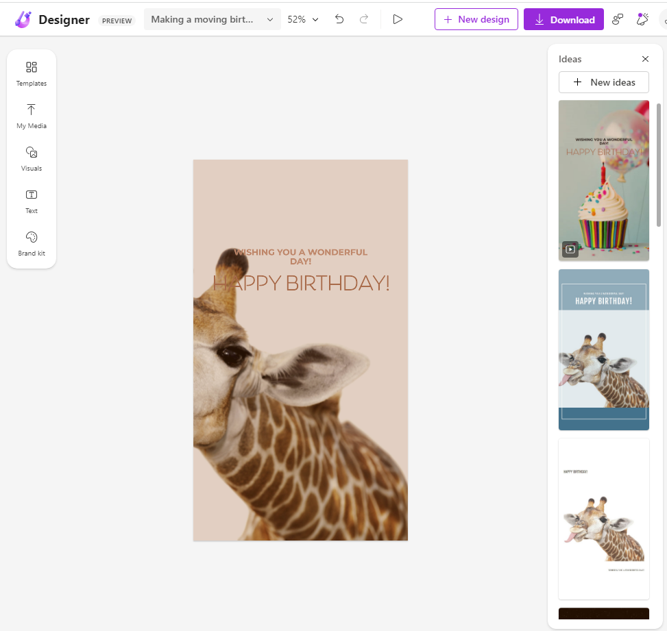 어쨌든 우여곡절(?) 끝이 만든 기린이 들어간 움직이는 생일카드(인데 PNG로 다운로드하여서 움직이지 않는다. ㅎ)