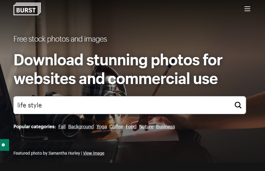 쇼피파이에서 제공하는 무료 이미지 사이트. 이미지가 한쪽에 치우쳐지지 않고 다양한 종류의 사진을 원한다면 버스트 사이트를 사용하는 걸 추천한다. 다른 사이트들이 공간이나 사물, 자연 등의 사진이 많다면 버스트에는 인물이 포함된 사진들도 자주 나와서 사람을 써야 하는 이미지가 있다며 버스트 추천.