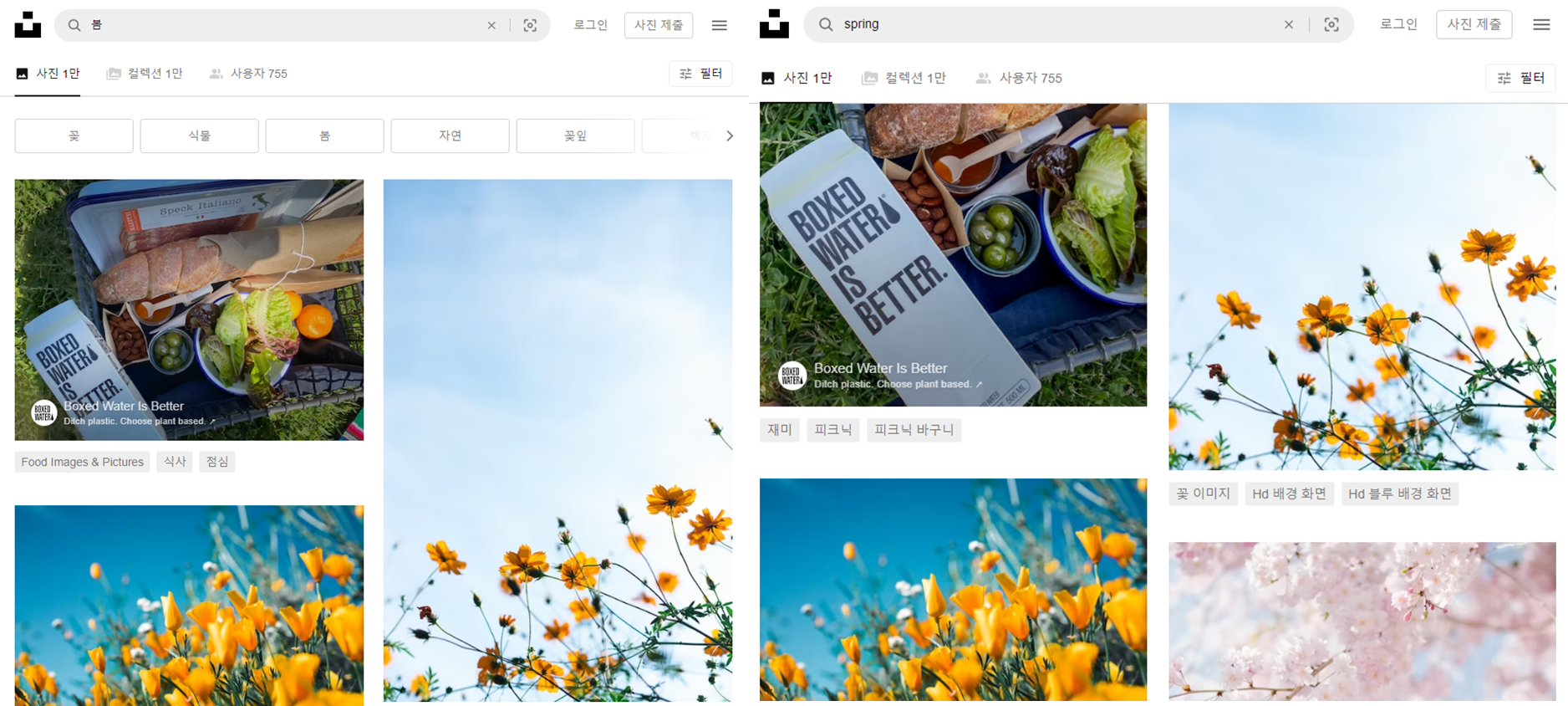 똑같이 '봄'이란 키워드로 검색해보았다.